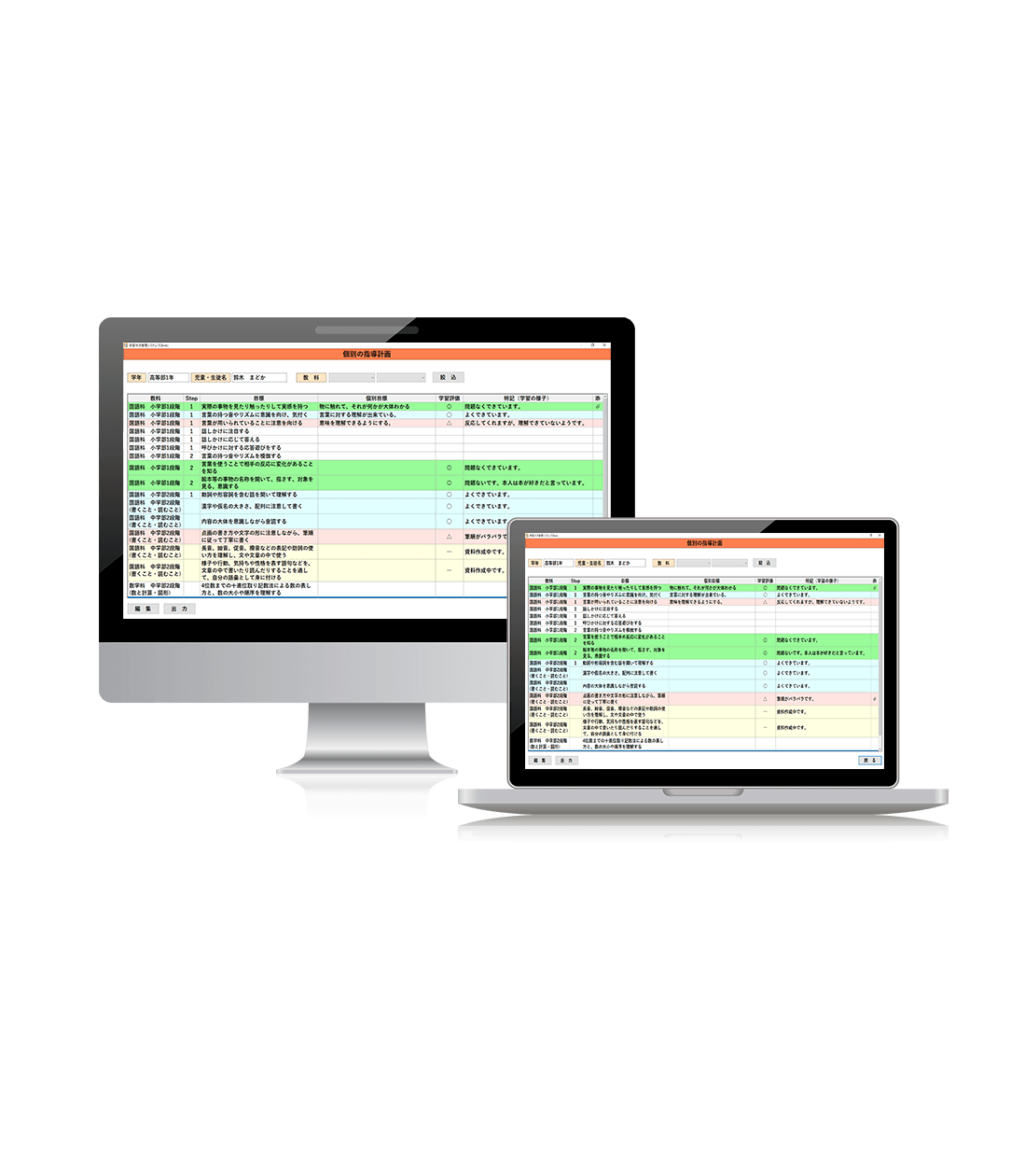●児童生徒一人一人の実態把握、目標と学習、指導と評価を記録することで、直感的に把握し、継続的に指導に活用することができます。